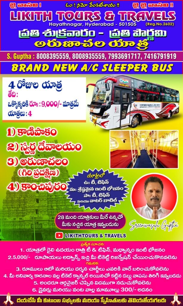 3. రూములు ఆటో మరియు దర్శన ఛార్జీలు ఎవరికి వారే భరించుకోవలెను.